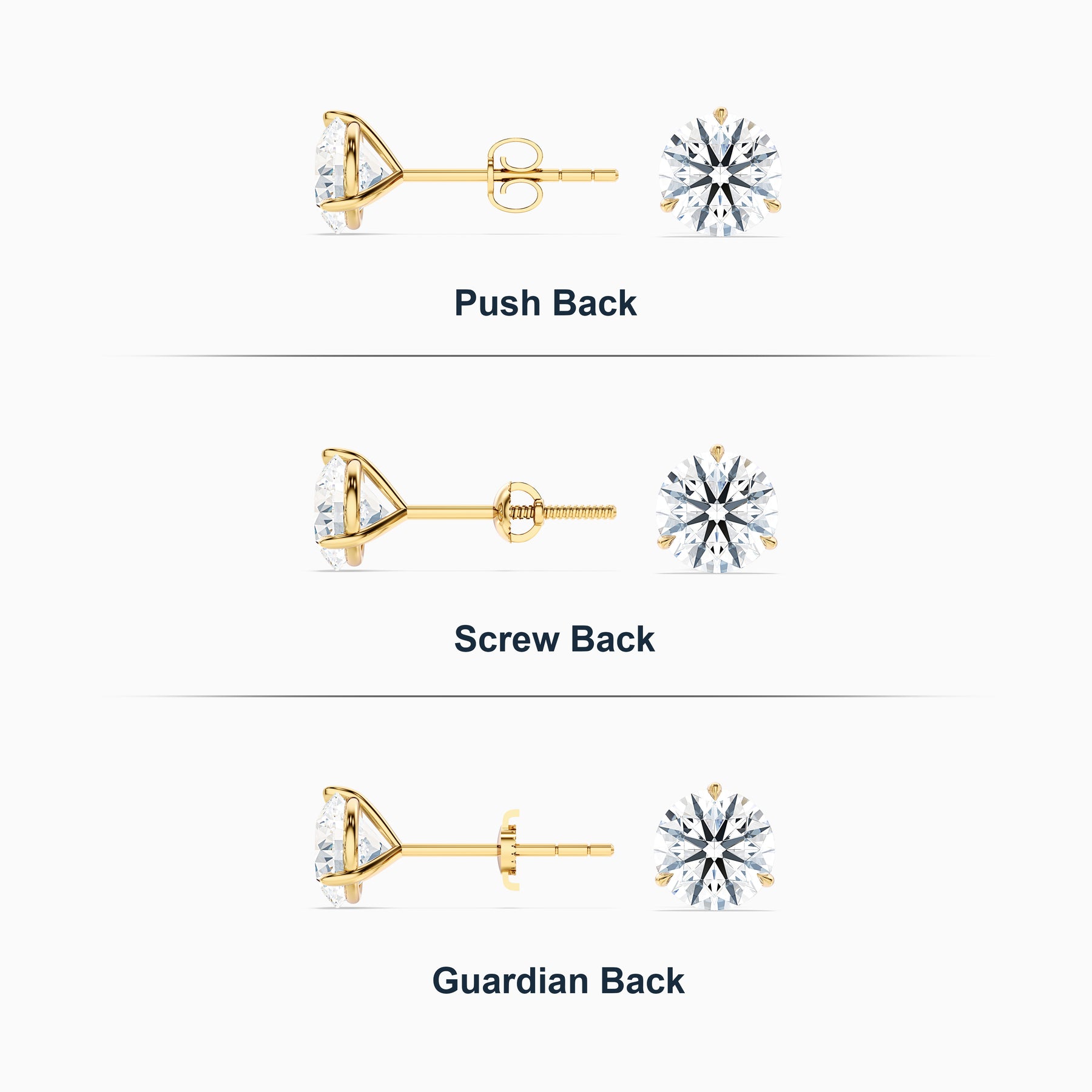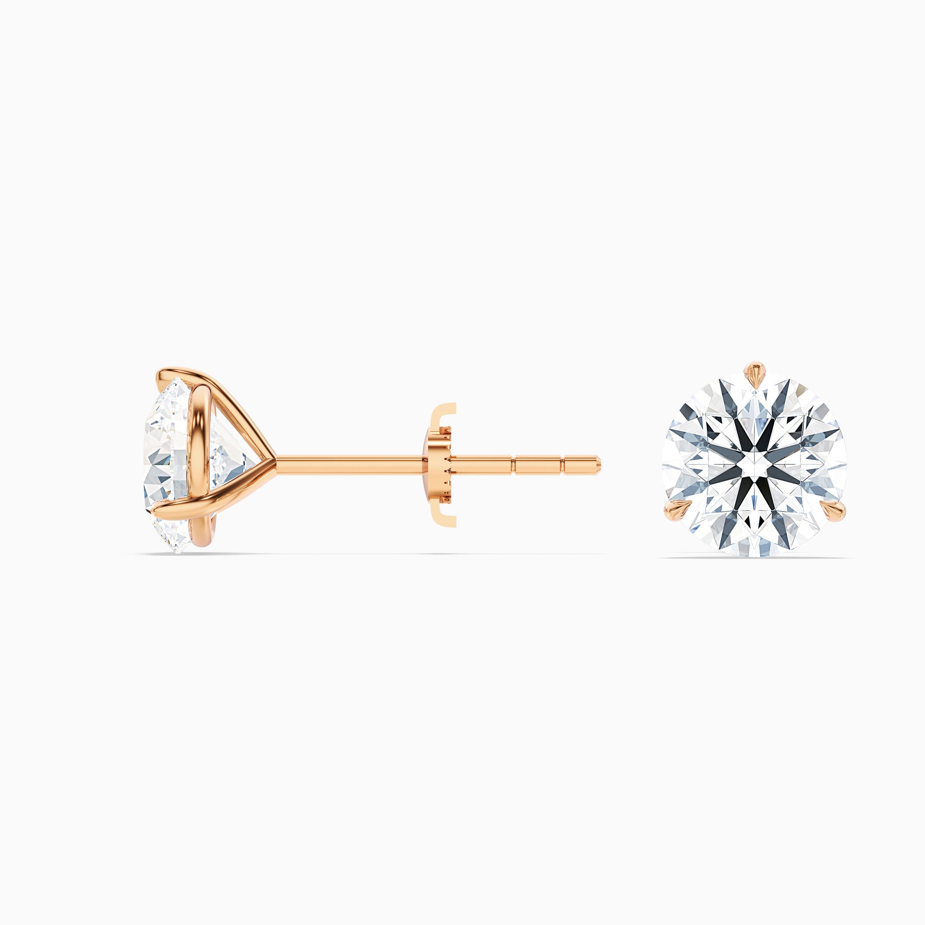 Each earring features a round cut lab grown diamond that is IGI certified, ensuring exceptional quality, brilliance, and authenticity. The three-prong setting not only secures the diamond but also allows maximum light to pass through, creating a radiant sparkle from every angle.