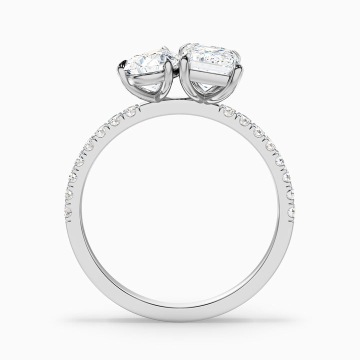 Ainsy 4 carat pear and emerald toi et moi pave ring in lab grown diamond is an exquisite toi et moi diamond ring crafted in 18k rose gold. The cool, lustrous finish of band beautifully complements the sparkle of the stones, with a total carat weight of 4 carat that ensures a captivating brilliance.