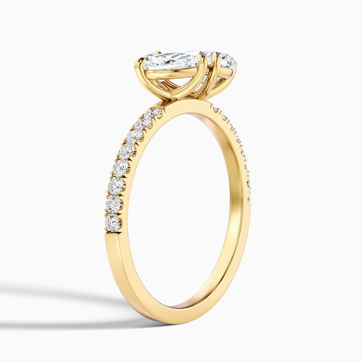 Aiyla 1.5 carat pear two stones toi et moi pave ring in moissanite diamond is a dazzling toi et moi diamond ring crafted in 14k white gold. The band tone adds a touch of luxury to this already stunning design. With a total carat weight of 1.5 carat, it offers an impressive sparkle that is sure to captivate.