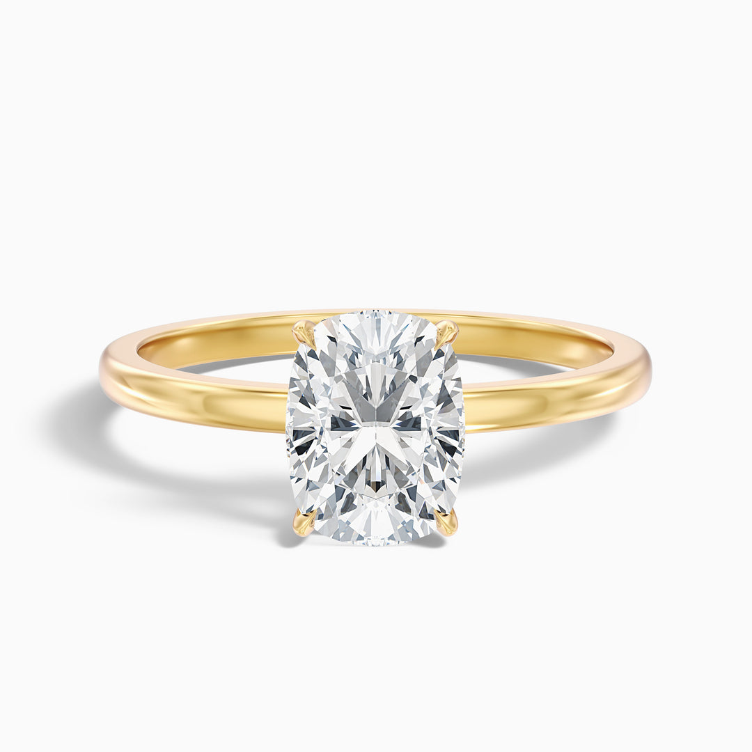 Anahi 5 Carat Elongated Cushion Low Profile Solitaire Moissanite Diamond Ring in 14k Yellow Gold