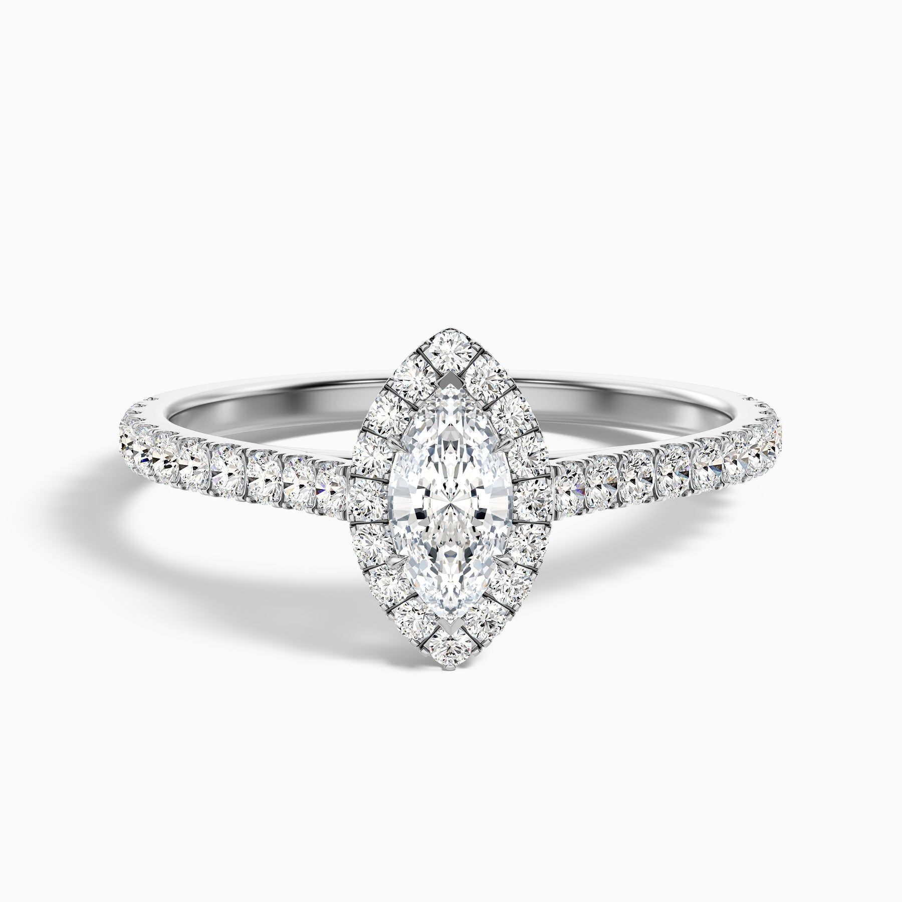 Celebrate your love with the anna 2 carat marquise halo pave moissanite engagement ring featuring a 2 carat moissanite diamond surrounded by a delicate halo, it's a true expression of romance. Crafted in 925 sterling silver, the ring is both charming and durable, making it perfect for everyday wear.