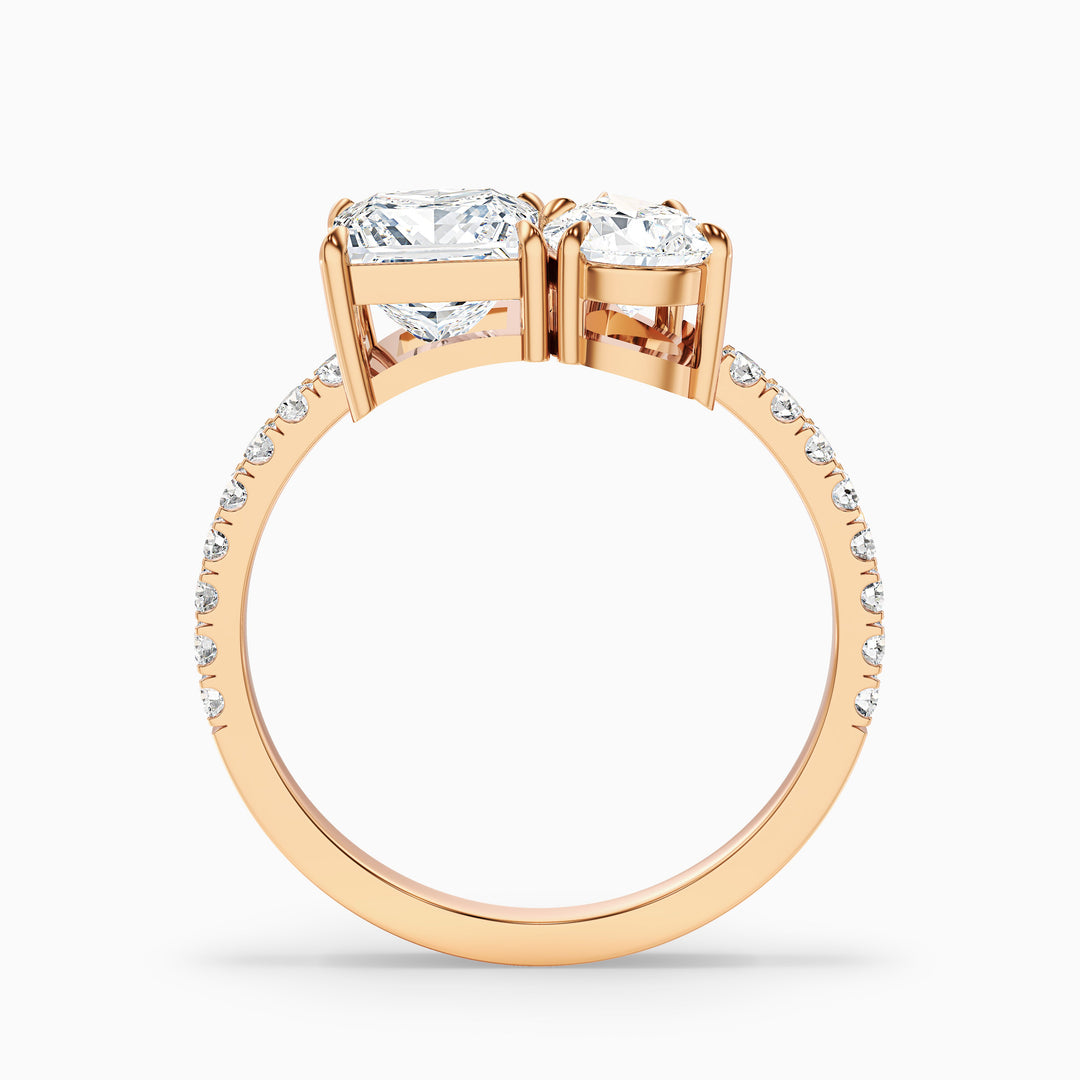 Anyla Toi Et Moi Pave Ring in 14k Rose Gold With Princess and Pear Two Stone Lab Grown Diamond (1.5 Ct. Tw.)