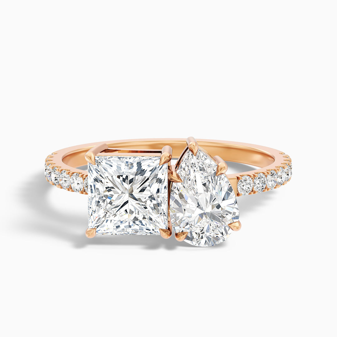 Anyla Toi Et Moi Pave Ring With Princess and Pear Two Stone Moissanite Diamond in 14k Rose Gold (1.5 Ct. Tw.)