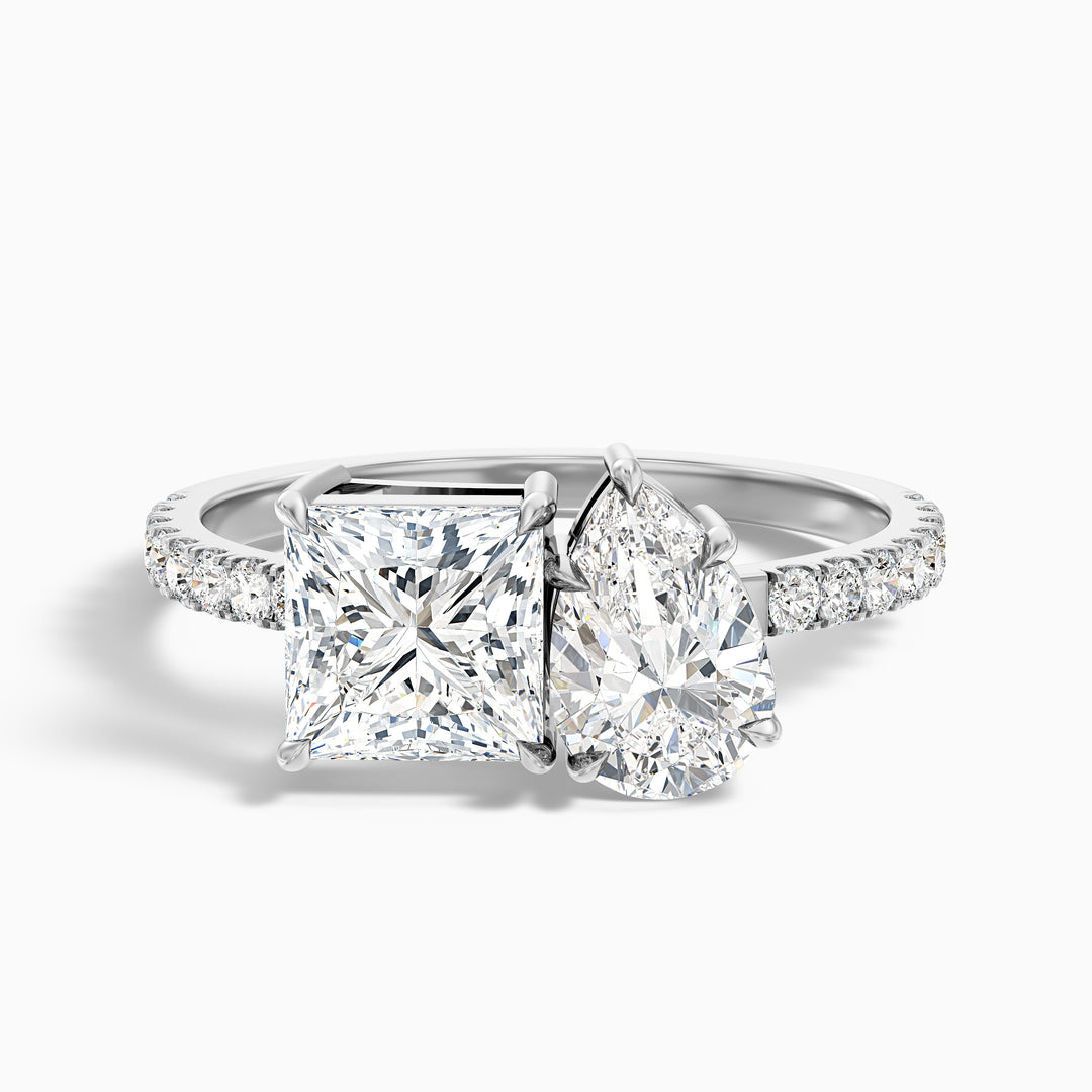 Anyla 1.5 carat princess and pear two stone toi et moi pave ring in lab grown diamond is a sophisticated toi et moi diamond ring made from platinum. The soft hue of the band enhances the sparkle of the stones, while the total carat weight of 1.5 carat ensures a brilliant shine.