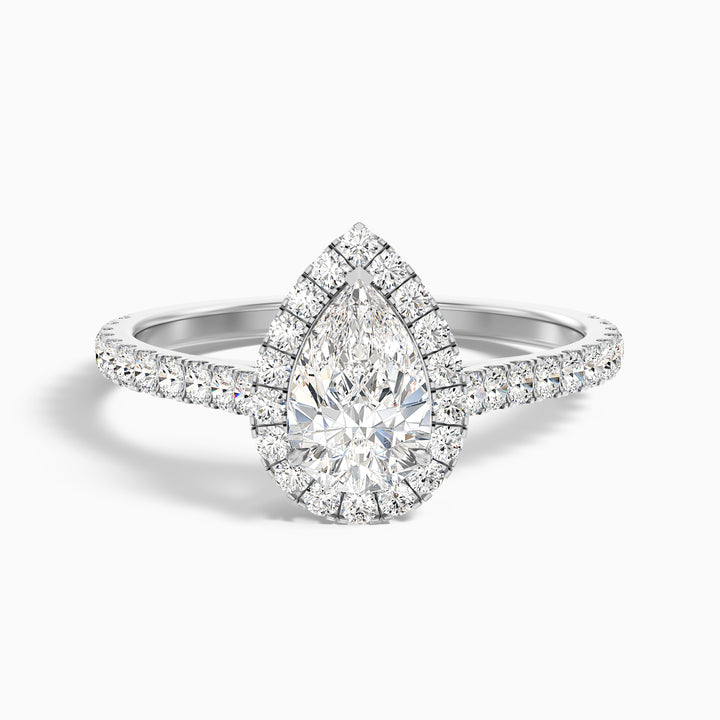 Aria 4 Carat Pear Shaped Halo Lab Grown Engagement Ring in 10k White Gold