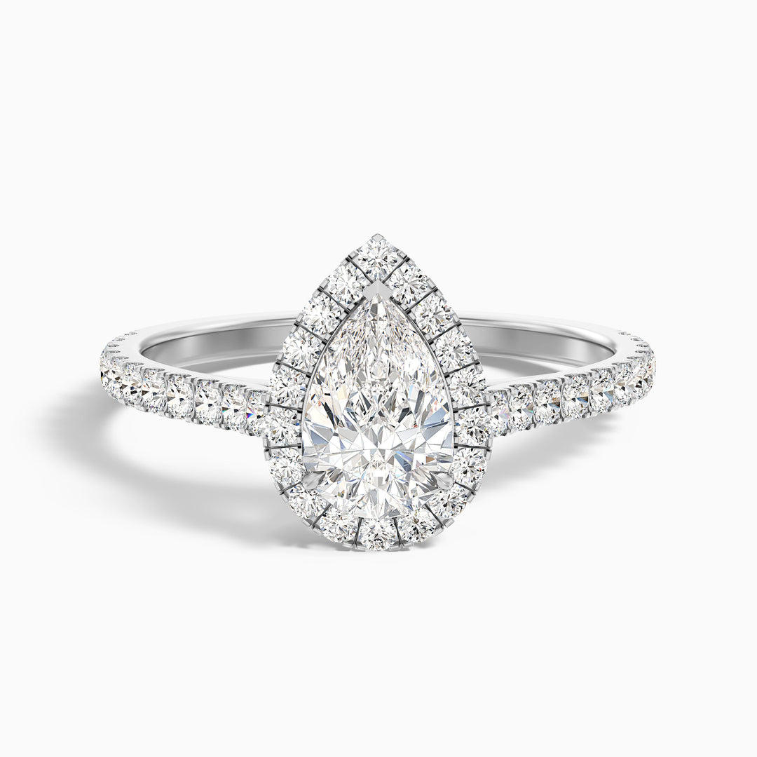 Fall in love with the aria 5 carat pear shaped halo lab grown engagement ring. It features a dazzling 5 carat lab grown diamond, surrounded by a halo for extra sparkle. The diamond is cut to enhance its brilliance, making it a standout piece. Crafted in 10k yellow gold, the ring offers both beauty and strength, perfect for everyday wear.