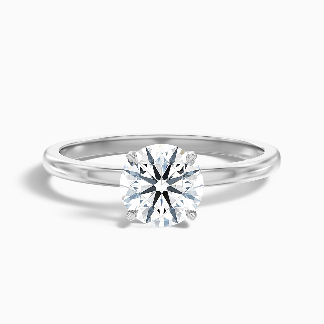 Experience the beauty of simplicity with the arlen round cut low profile solitaire moissanite diamond ring. Featuring a 2.5 carat moissanite diamond set in a solitaire design, it’s a classic choice.