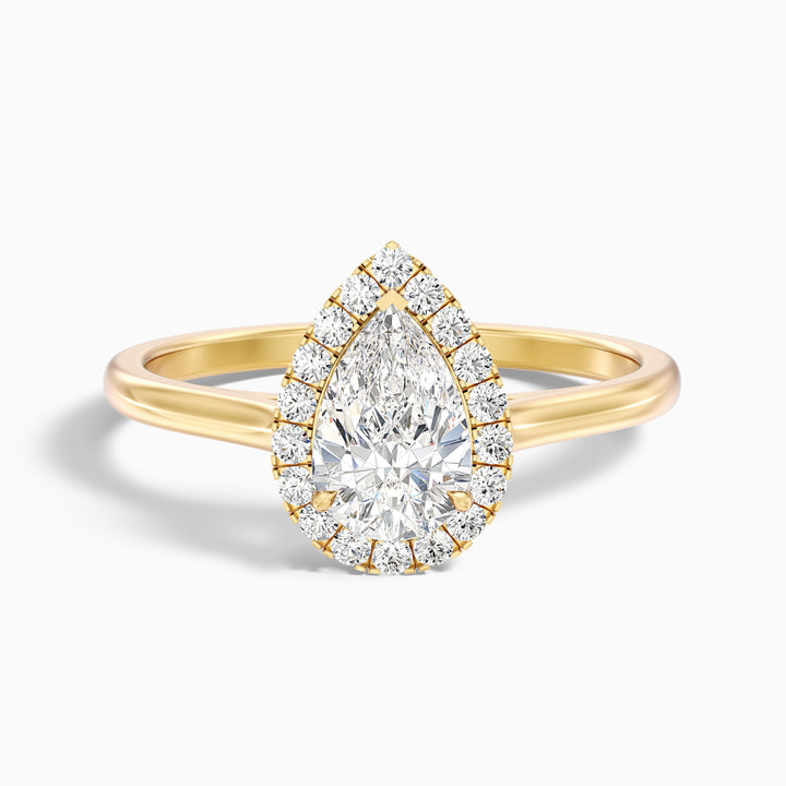 Arya 2 Carat Pear Halo Moissanite Diamond Ring in 14k Yellow Gold