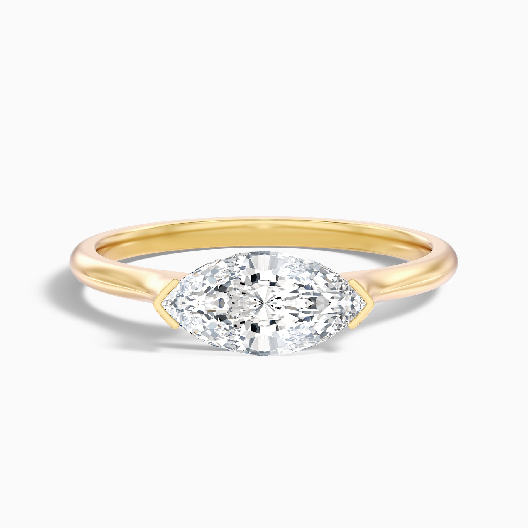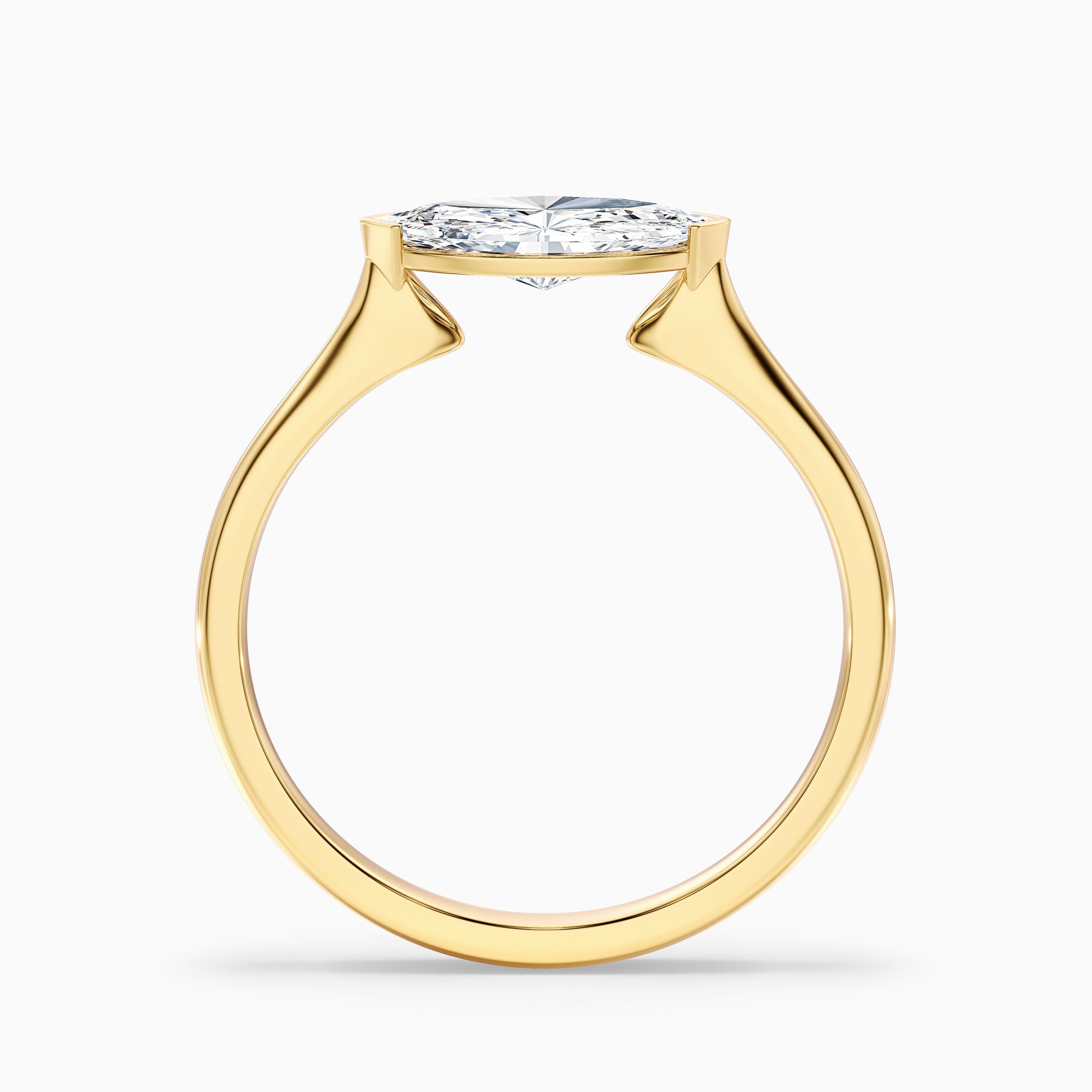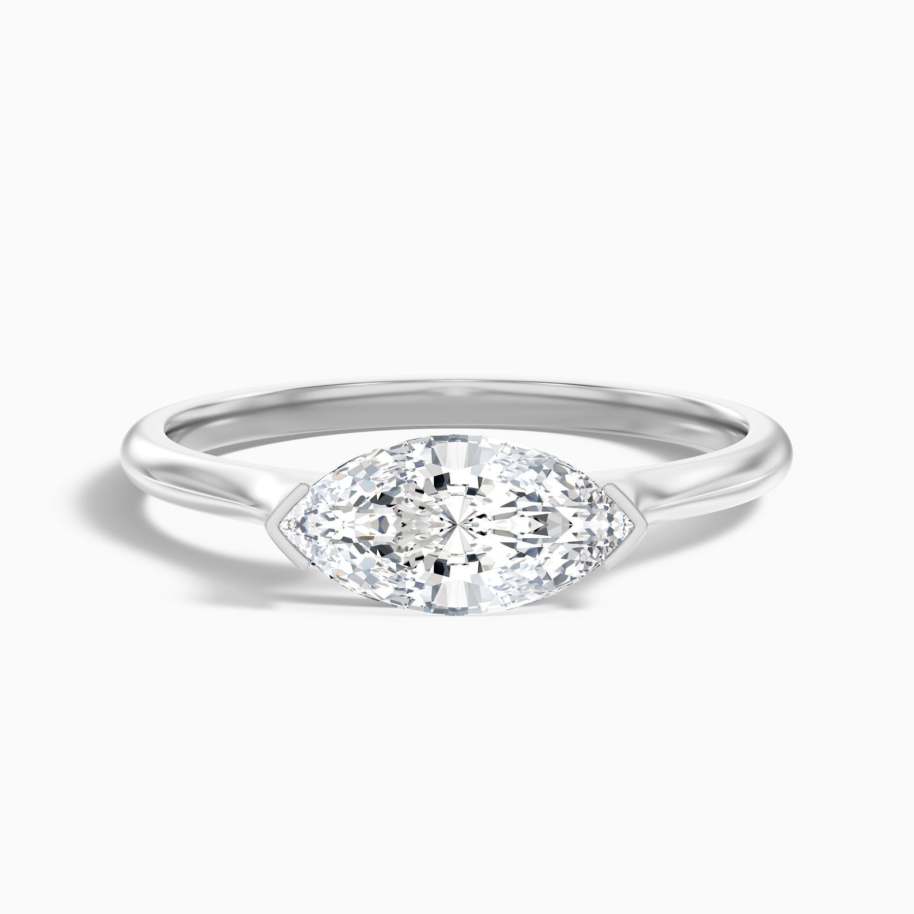 The blyth marquise east west moissanite diamond ring is a stylish engagement ring with a 2 carat diamond set in an East-West horizontal layout, creating a fresh and modern appearance that catches light beautifully. Made in 925 sterling silver, the ring is durable, comfortable, and ideal for daily wear or special occasions. Its solitaire design focuses attention on the 2 carat stone, while the horizontal orientation adds a unique twist for modern brides.