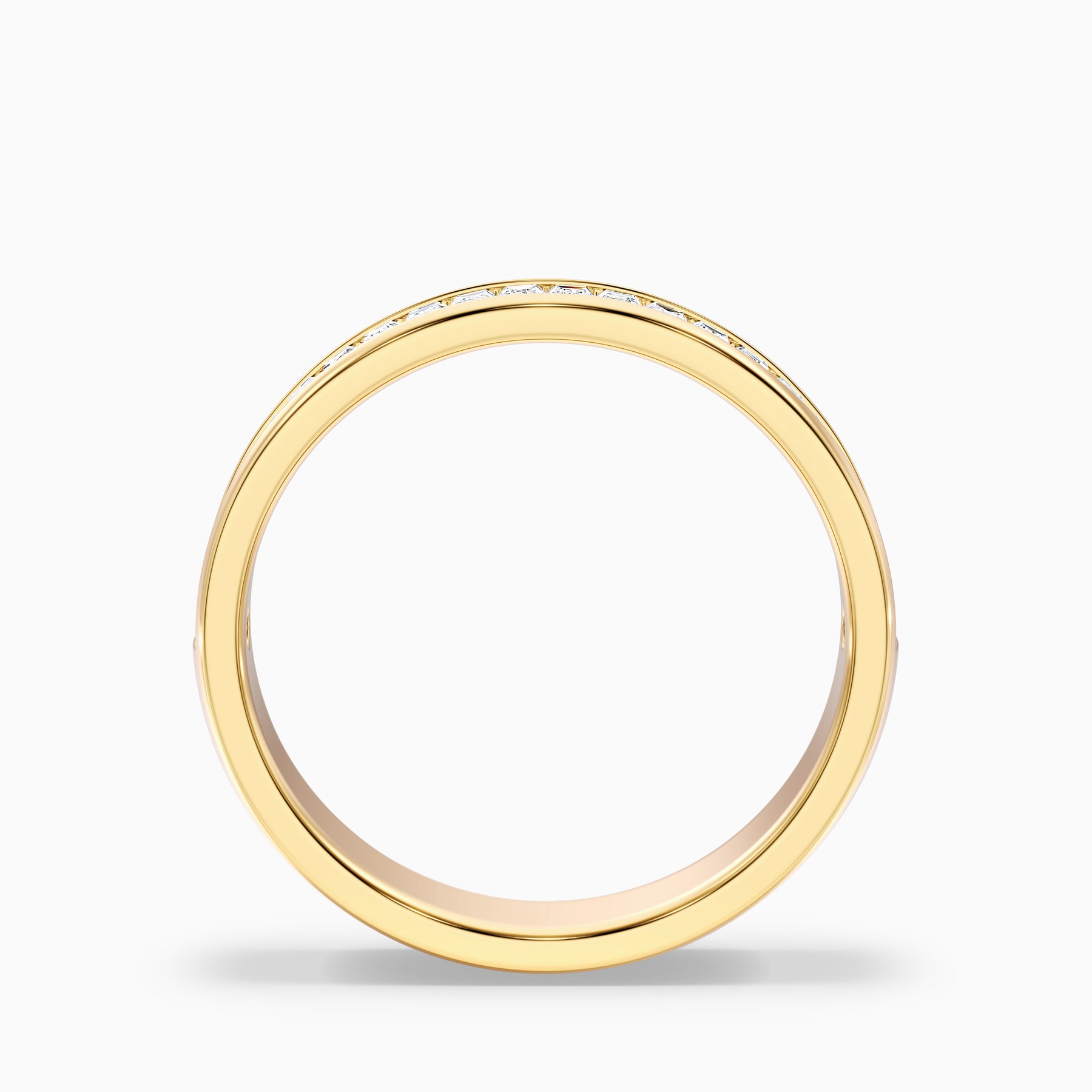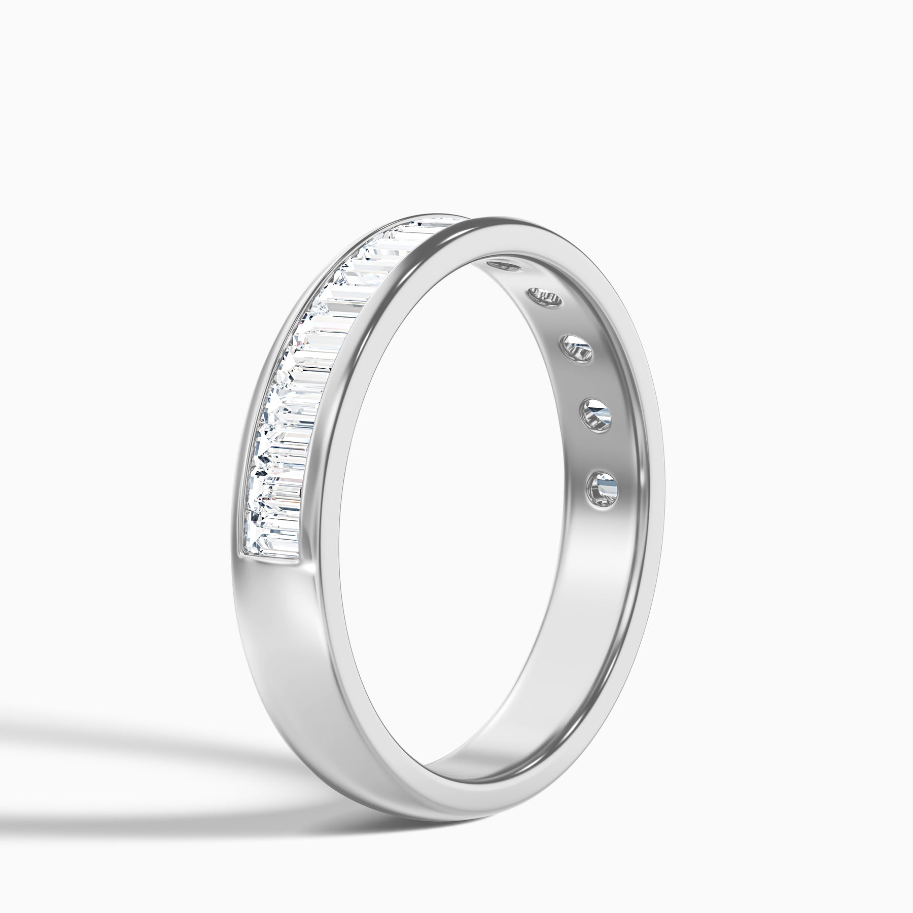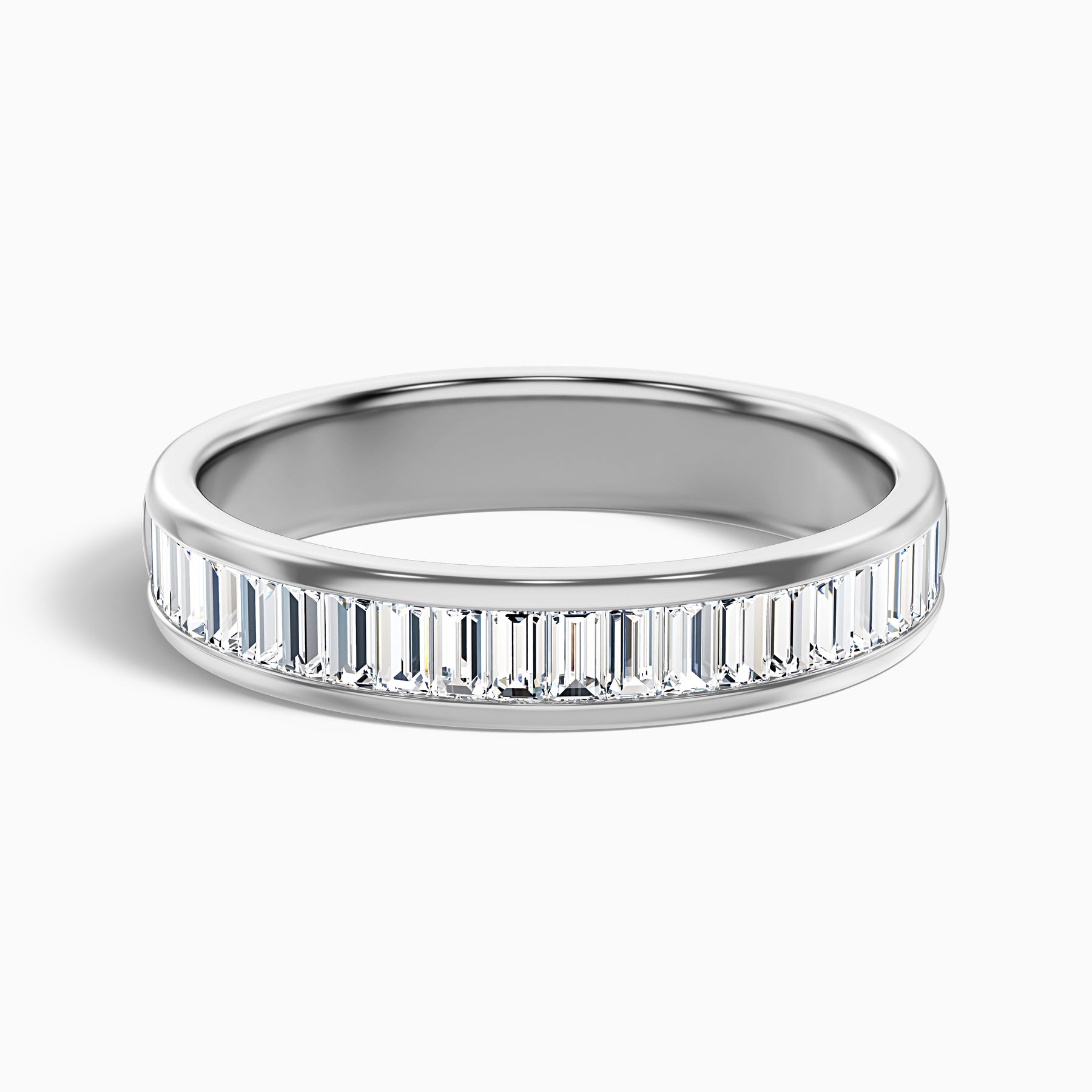 The Briana Channel Set Baguette Cut Lab Grown Diamond Wedding Band features 17 sparkling baguette diamonds set seamlessly in a channel setting. With a 3.5 mm band width, it offers a sleek, modern silhouette and continuous brilliance. Perfect as a wedding band, anniversary ring, or stacking piece, this ethically crafted ring combines timeless elegance with sustainable luxury.