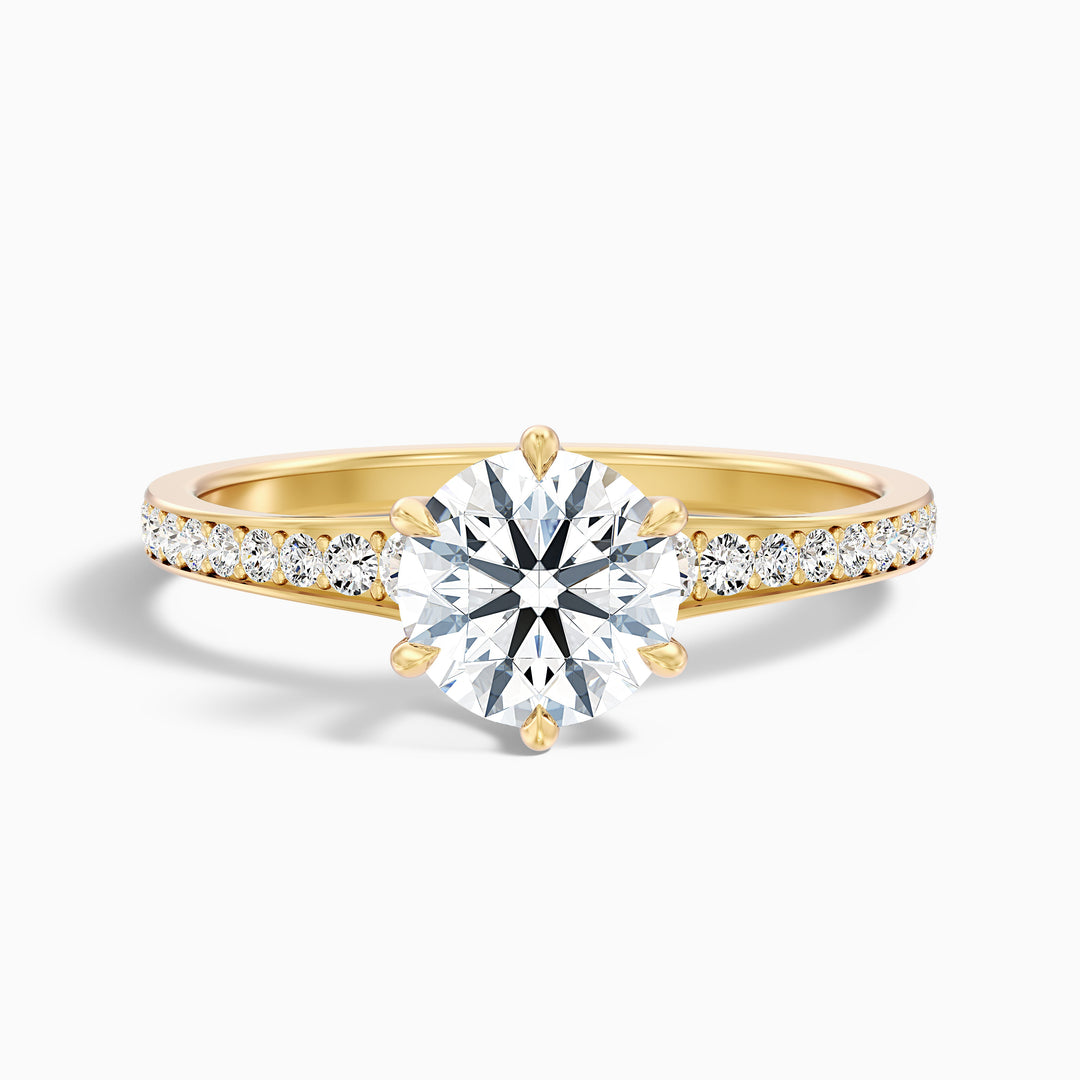 Celebrate your love story with the carol 4.5 carat round side stone pave moissanite engagement ring. It features a dazzling 4.5 carat moissanite diamond in a side stone setting. The 10k yellow gold ring offers a perfect balance of elegance and strength.