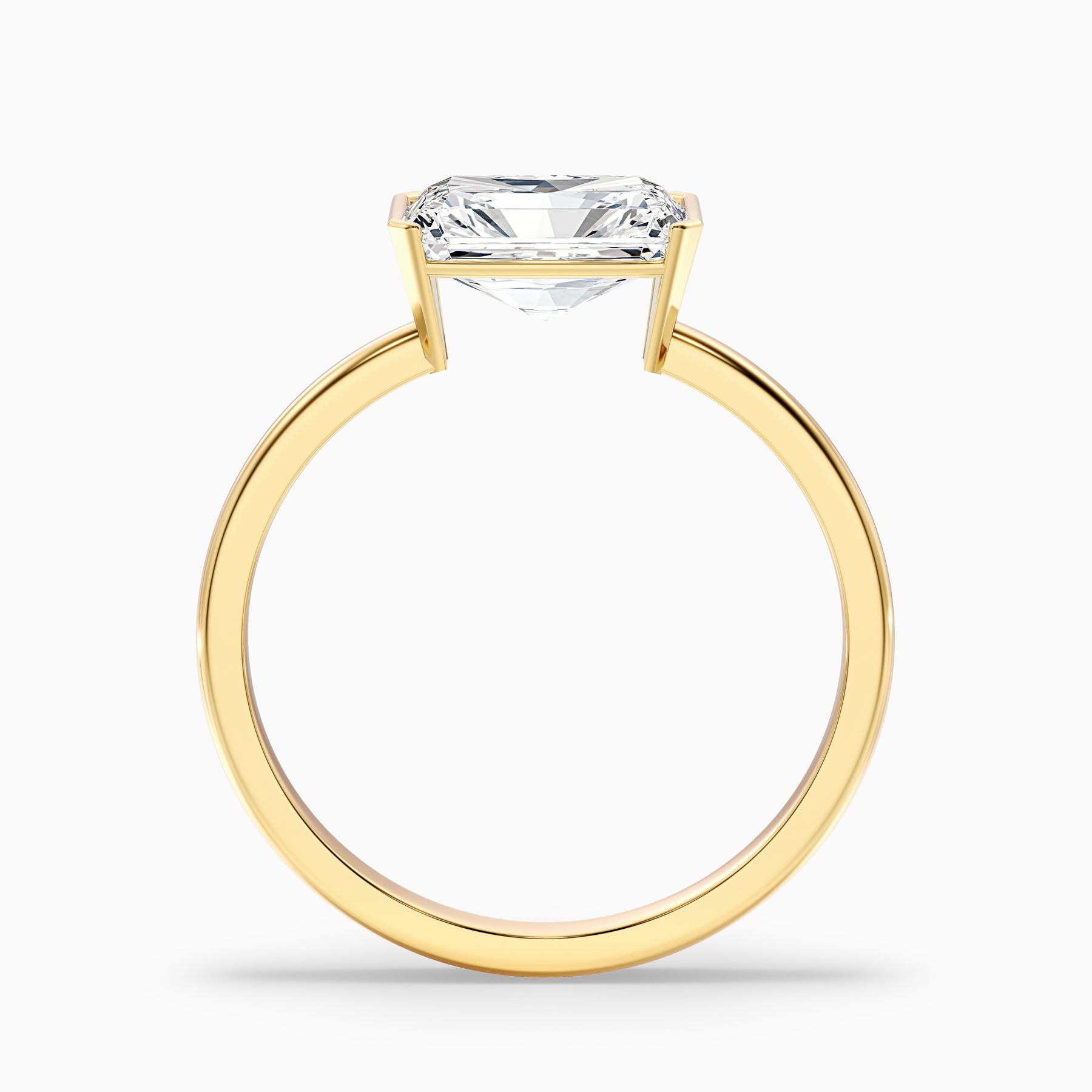 The celia radiant cut east west half bezel moissanite diamond ring is a modern engagement ring with a 1 carat diamond set in a horizontal East-West style, giving it a unique and eye-catching look that stands out from traditional rings. Made in platinum, the band is smooth, durable, and comfortable, making it perfect for daily wear. The solitaire diamond shines brilliantly in its horizontal setting, reflecting light beautifully from every angle, making it ideal for proposals, weddings, or anniversaries.