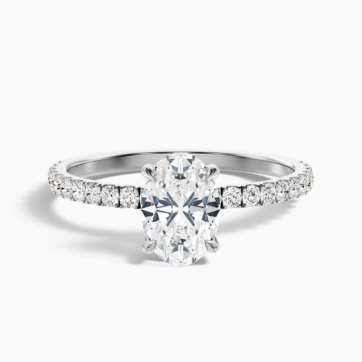 Experience elegance with the chase 3 carat oval hidden halo lab grown engagement ring. It features a 3 carat lab grown diamond in a hidden halo setting. The 14k yellow gold band is strong and stylish, perfect for everyday wear.