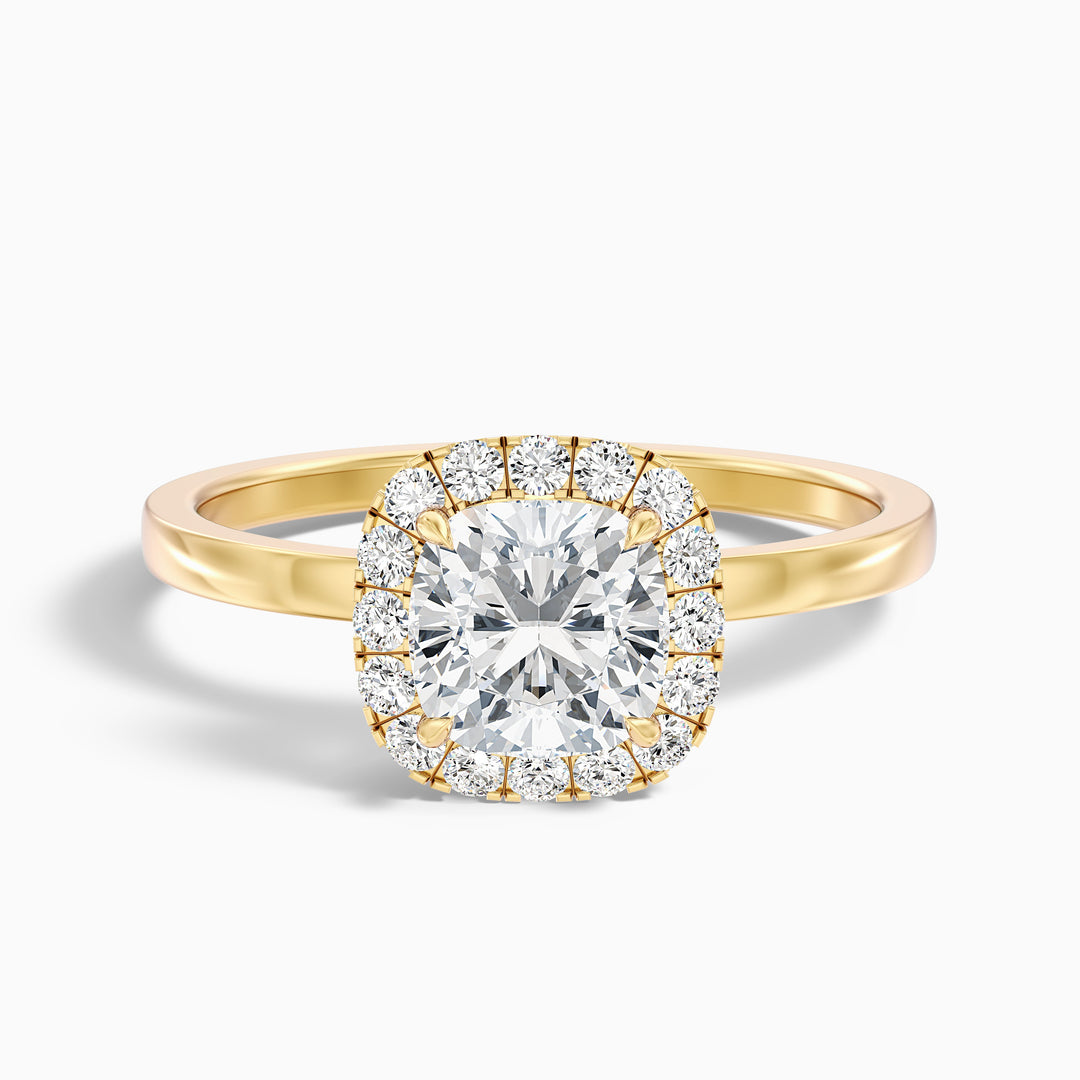 The halo setting adds an extra layer of sparkle, making the diamond appear even more radiant. This ring is ideal for couples who want to make a statement with their engagement ring, showcasing their love and commitment in a bold and beautiful way.