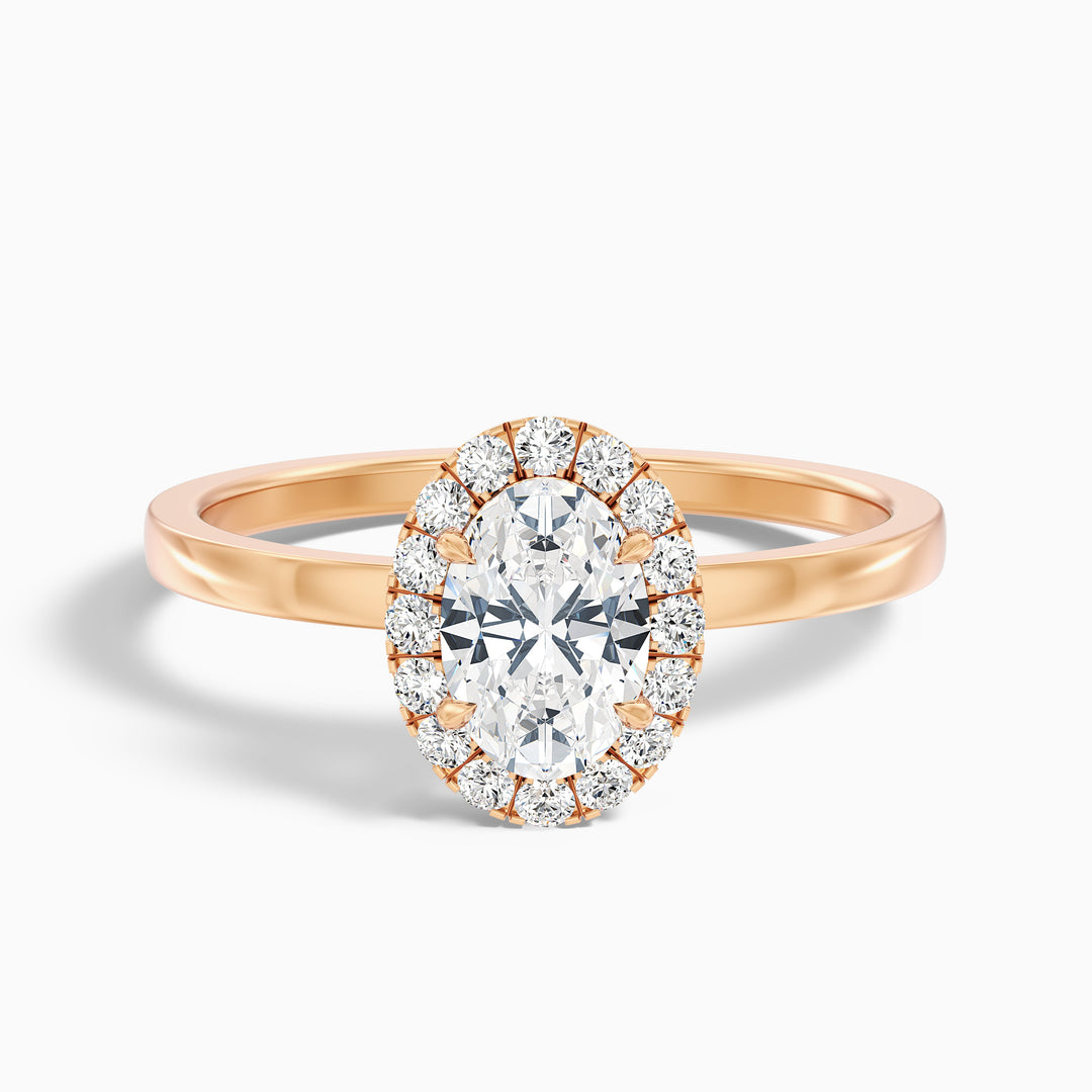 The halo design not only adds glamour but also makes the center diamond appear larger and more impressive. This ring is ideal for those who appreciate both elegance and ethical jewelry. Make a lasting impression with this beautiful symbol of love and commitment.