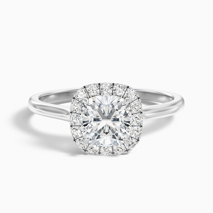 Dina 1 Carat Cushion Cut Halo Moissanite Diamond Ring in 14k White Gold