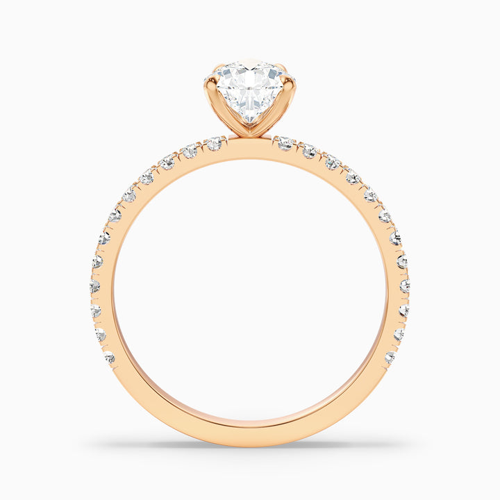 The elva pear cut side stone pave moissanite diamond ring offers a touch of vintage glamour with its intricate side stone setting. At its heart, a breathtaking 2.5 carat pear cut diamond is surrounded by meticulously placed accent stones, creating a ring with timeless appeal. The 18k yellow gold band features delicate detailing, reminiscent of antique designs that never go out of style.