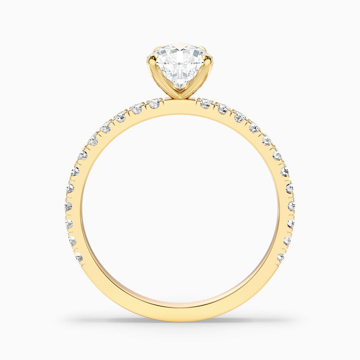 The elva pear cut side stone pave moissanite diamond ring radiates brilliance with its elegant pavé-set side stones. A striking 3.5 carat pear cut diamond sits proudly in the center, while the 10k white gold band is encrusted with a series of pavé diamonds that create a continuous sparkle. This design enhances the overall brilliance, making the center stone appear even more luminous.