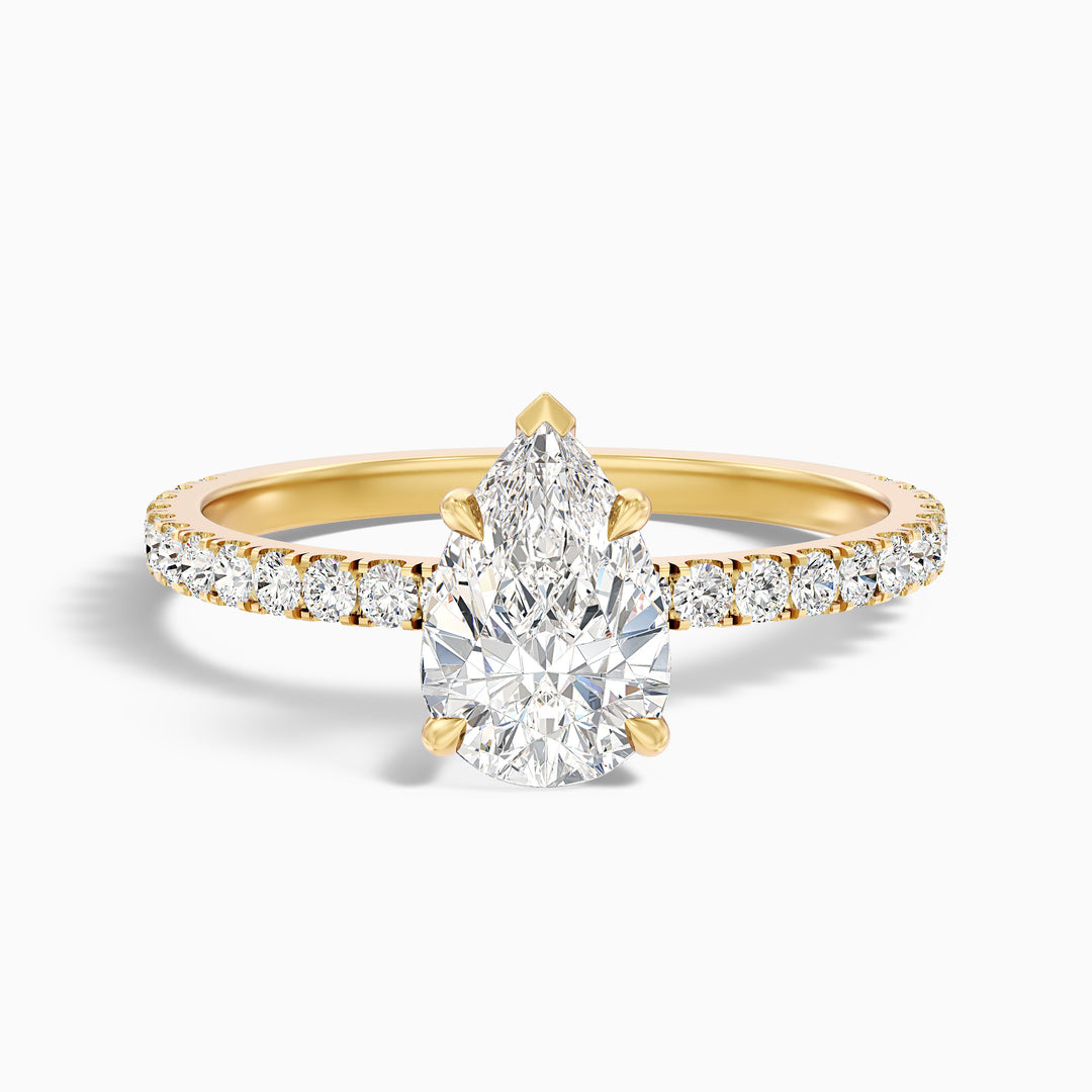 Elva 4.5 Carat Pear Cut Side Stone Pave Moissanite Diamond Ring in 18k Yellow Gold