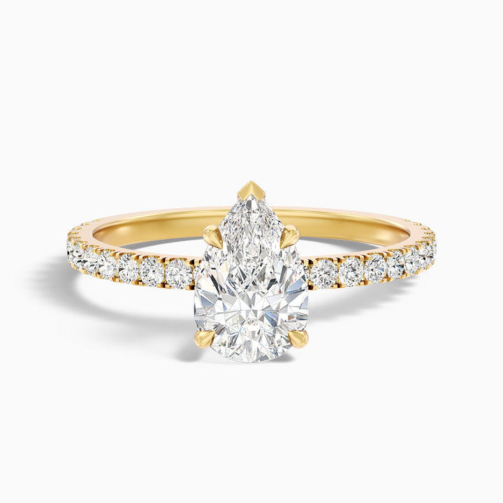Elva 5 Carat Pear Cut Side Stone Pave Moissanite Diamond Ring in 18k Yellow Gold