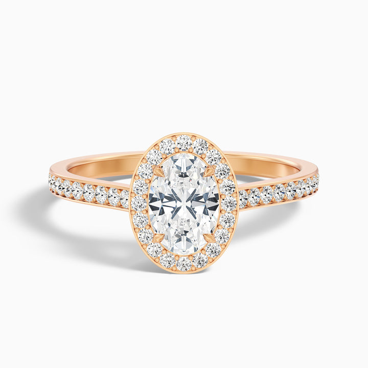Emily 2 Carat Oval Halo Pave Moissanite Diamond Ring in 14k Yellow Gold