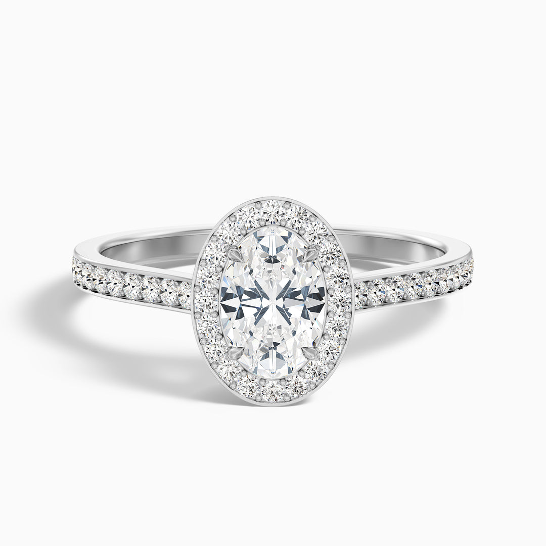 Celebrate your love with the emily 2 carat oval halo pave moissanite engagement ring featuring a 2 carat moissanite diamond surrounded by a delicate halo, it's a true expression of romance. Crafted in 14k yellow gold, the ring is both charming and durable, making it perfect for everyday wear.