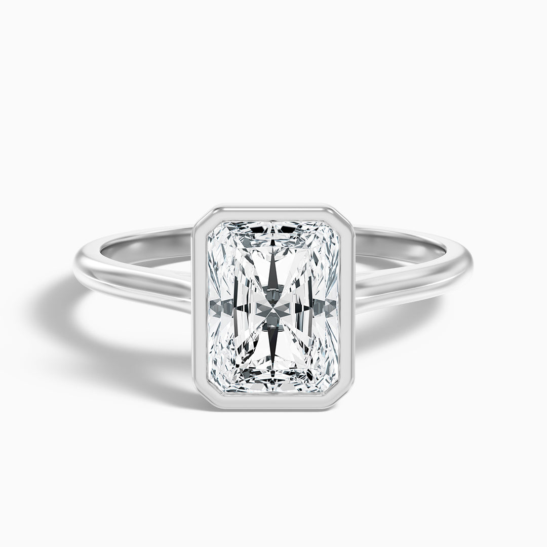 For those who love simplicity, the erika radiant cut bezel set engagement ring is a perfect choice. This stunning ring features a 3.5 carat Radiant Cut diamond set securely in a bezel setting. The smooth edges and polished 14k rose gold band enhance its modern and sleek appearance.