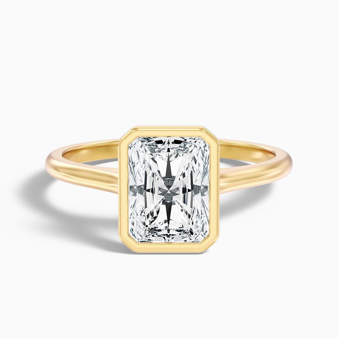 Delicate yet durable, the erika radiant cut bezel set engagement ring is an exquisite choice for those who love minimal elegance. The 4.5 carat Radiant Cut diamond is securely nestled in a bezel setting, protecting it while enhancing its natural brilliance. The 10k white gold band is lightweight yet sturdy, ensuring a comfortable fit for everyday wear.