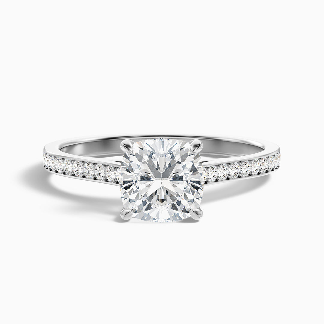 Eva 1.5 Carat Cushion Cut Side Stone Pave Moissanite Diamond Ring in Platinum