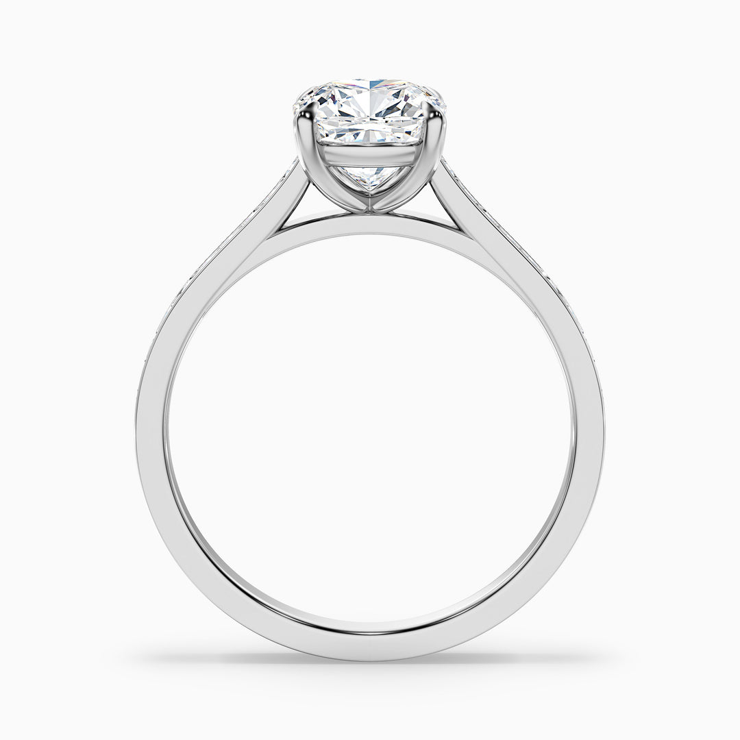 Radiate with the eva 3.5 carat cushion cut side stone pave moissanite engagement ring. It features a 3.5 carat moissanite diamond in a classic side stone setting. Made from 10k rose gold, the ring is both elegant and durable, perfect for everyday wear.