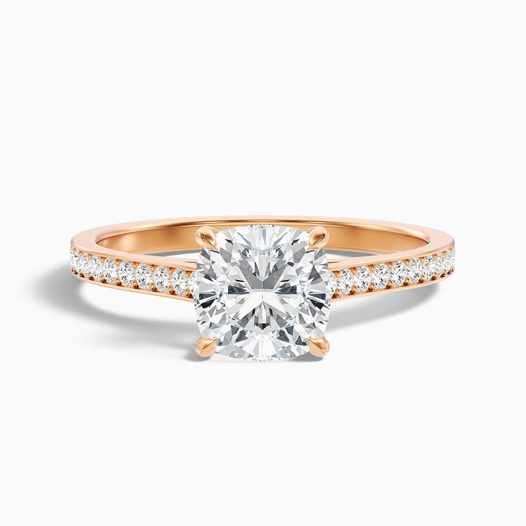 Eva 3.5 Carat Cushion Cut Side Stone Pave Moissanite Diamond Ring in 18k Rose Gold