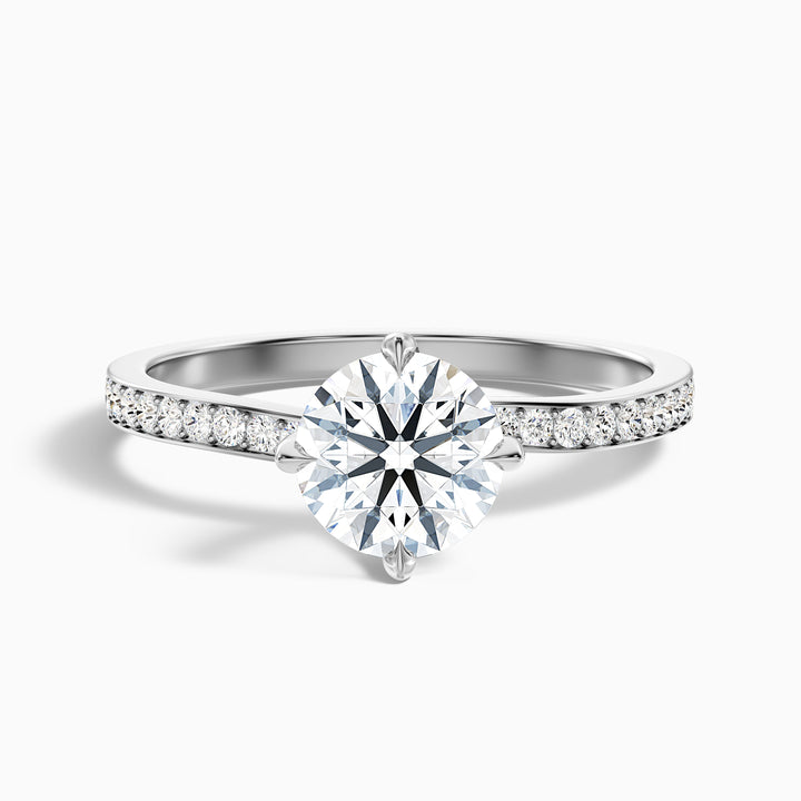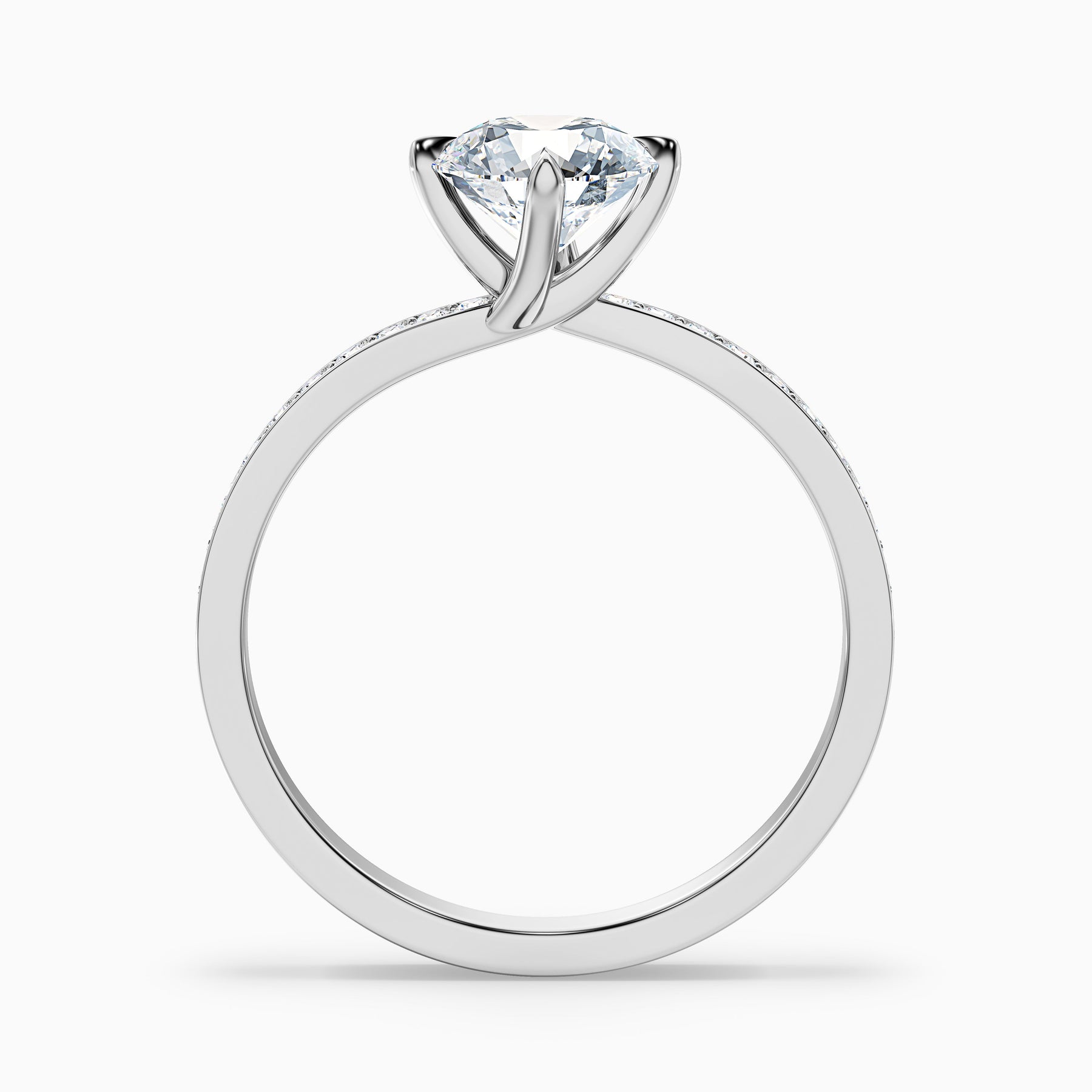 Capture your love story with the faye 3 carat round side stone pave moissanite engagement ring. Featuring a stunning 3 carat moissanite diamond set in a side stone design, it is a true classic. The platinum ring adds a touch of elegance and strength.