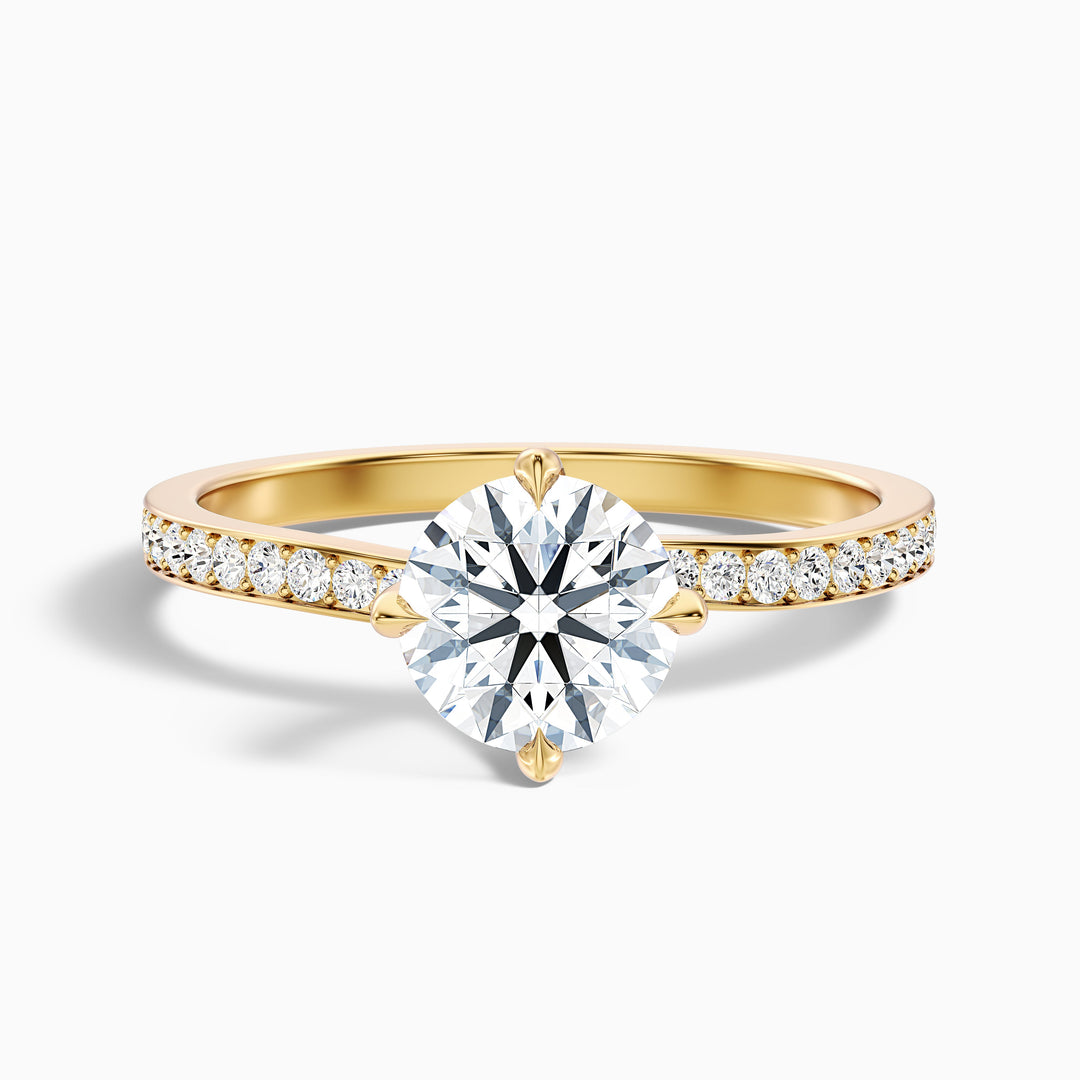Celebrate your love with the faye 4.5 carat round side stone pave moissanite engagement ring. Featuring a 4.5 carat moissanite diamond in a side stone setting, it is a timeless piece. The 10k rose gold ring adds elegance and durability, making it perfect for everyday wear.