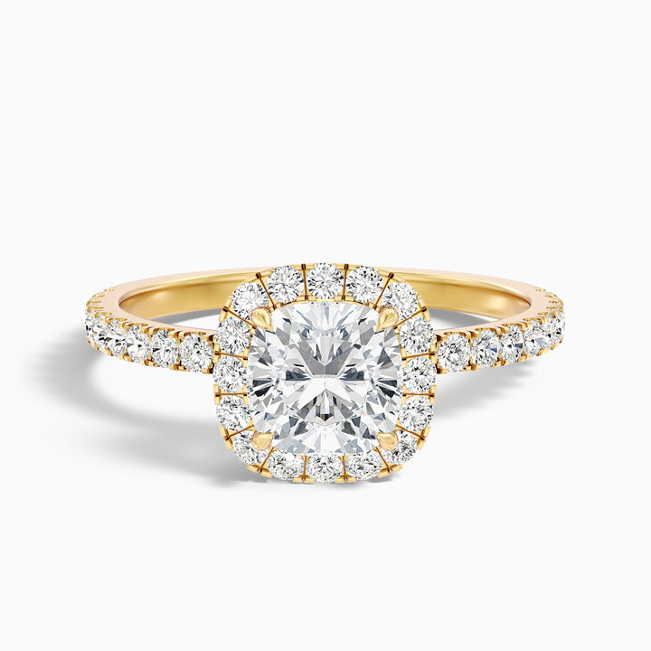 Gina 2 Carat Cushion Cut Halo Pave Moissanite Engagement Ring in 14k White Gold