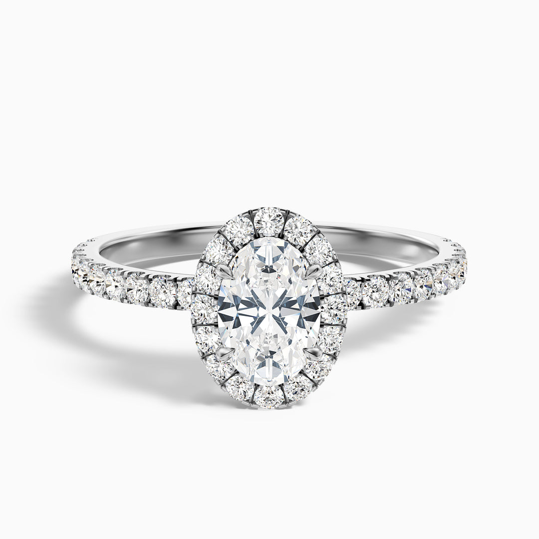 Grace 2.5 Carat Oval Halo Pave Moissanite Engagement Ring in 18k White Gold