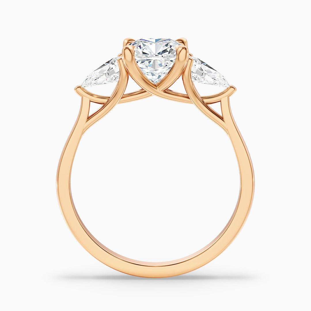 Hilary 1 Carat Three Stone Cushion With Pear SIde Stones Moissanite Diamond Ring in 18k Yellow Gold