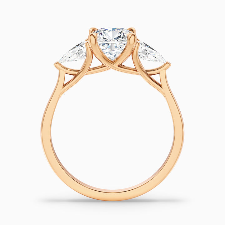 Hilary 2.5 Carat Three Stone Cushion With Pear SIde Stones Moissanite Diamond Ring in 14k White Gold