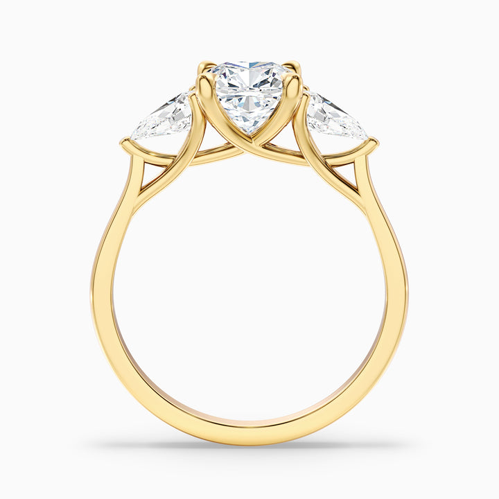 Hilary 2.5 Carat Three Stone Cushion With Pear SIde Stones Moissanite Diamond Ring in 18k White Gold