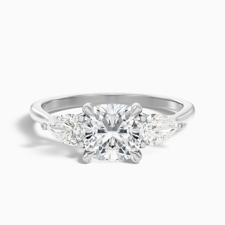 Hilary 5.5 Carat Three Stone Cushion With Pear SIde Stones Moissanite Diamond Ring in 18k White Gold