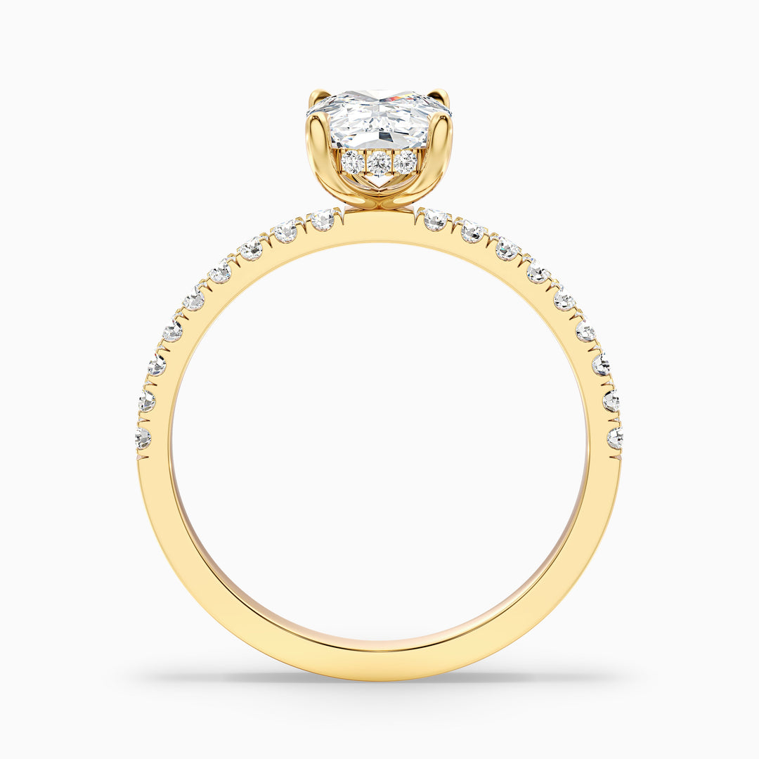 The 18k rose gold band is both elegant and sturdy, perfect for daily wear. The hidden halo adds a secret sparkle, making the diamond shine even more. This ring is ideal for those who love timeless beauty with a twist. Celebrate your commitment with this beautiful piece.
