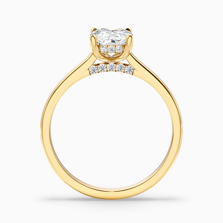 Crafted from 10k yellow gold, the ring is both stylish and strong. The hidden halo adds extra sparkle from below, enhancing the diamond's beauty. This ring is perfect for those who appreciate unique design and elegance. Celebrate your love with this beautiful ring.