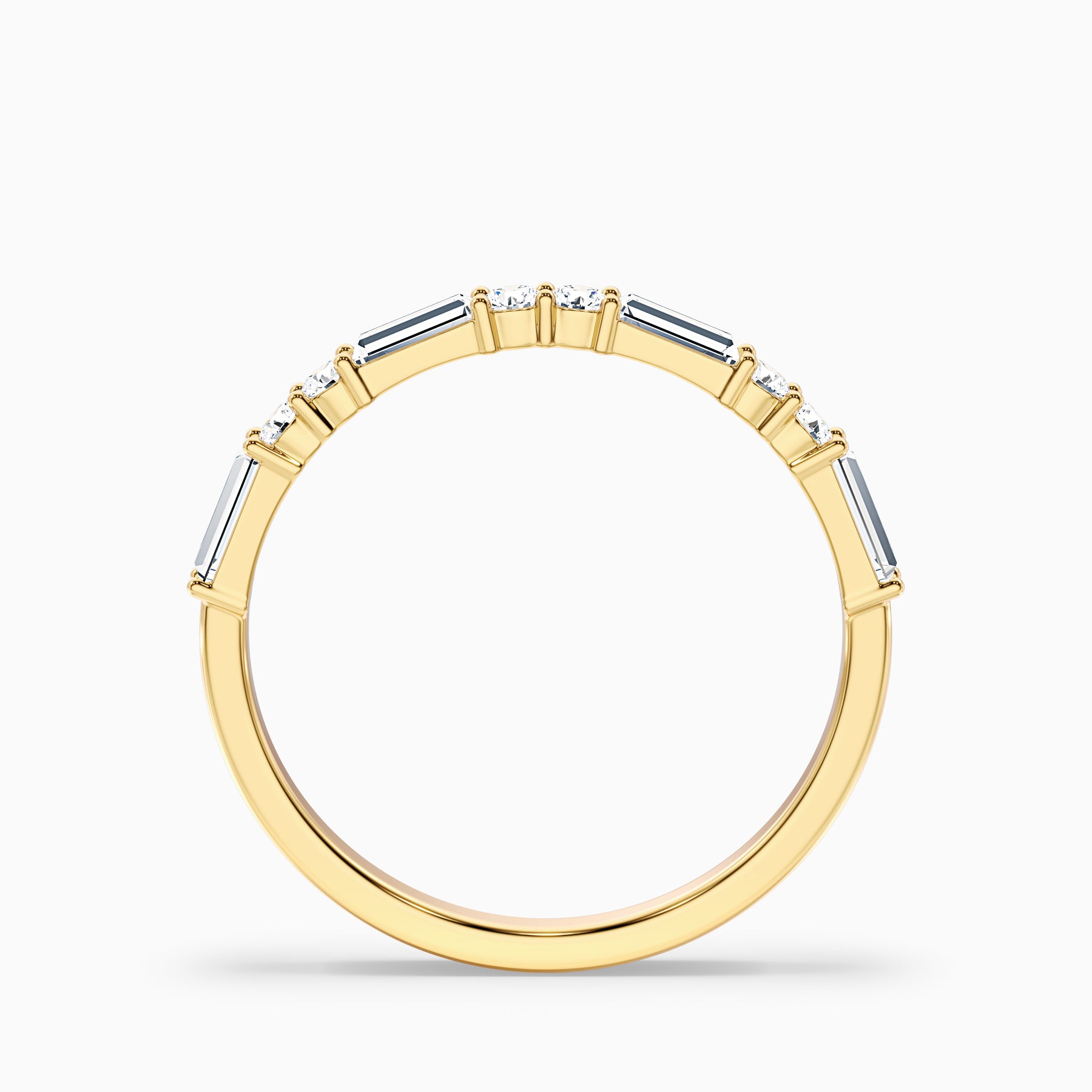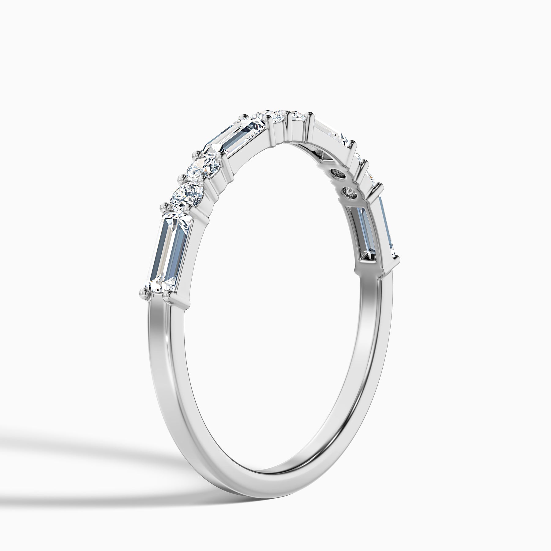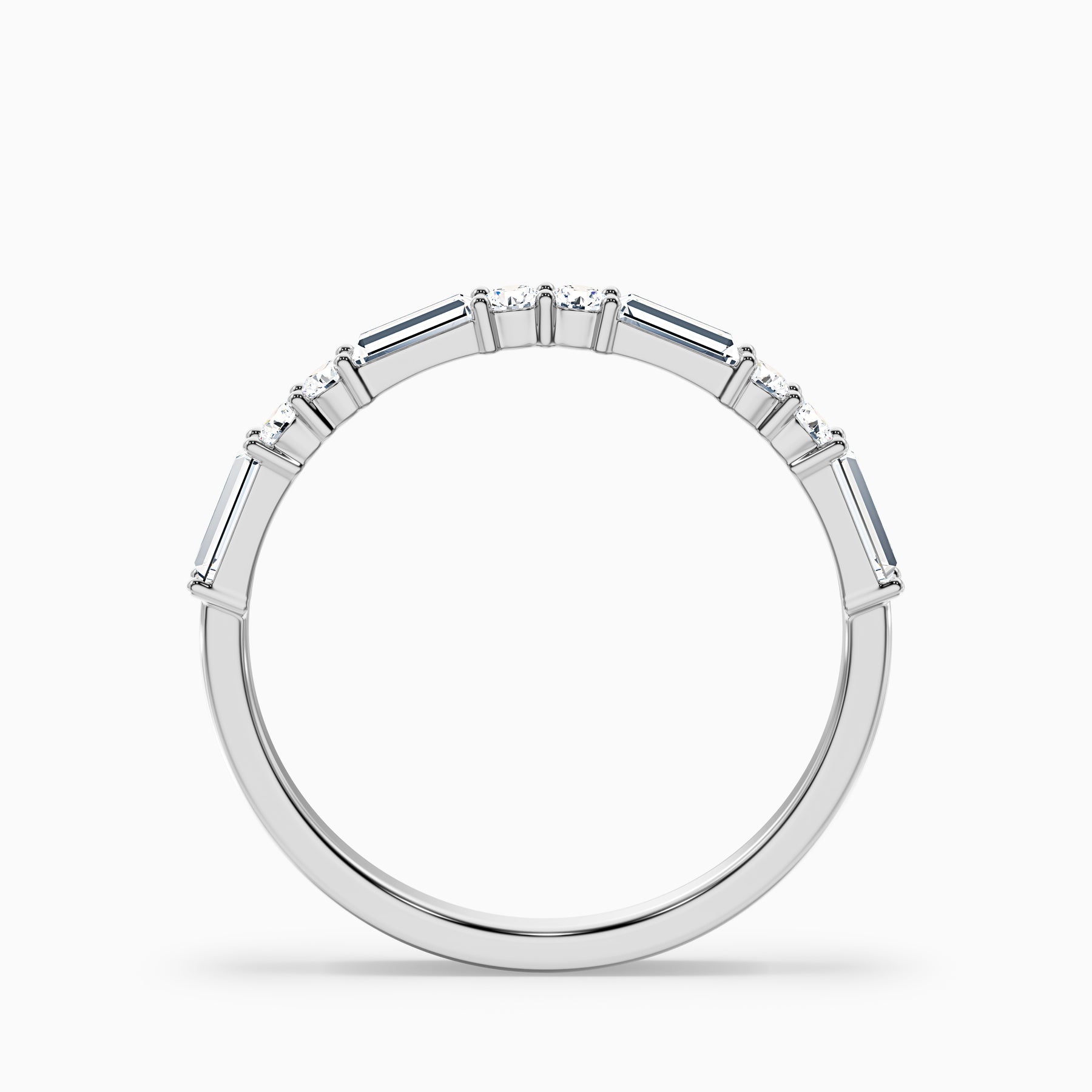 The Isleen Baguette and Round Cut Half Eternity Lab Grown Diamond Wedding Band combines baguette and round diamonds in a sleek half eternity design. Available in two variations, each 2 mm band offers sparkling brilliance in a shared prong setting. Perfect as a wedding band, anniversary ring, or stackable piece, it blends modern elegance with sustainable, ethically sourced diamonds.