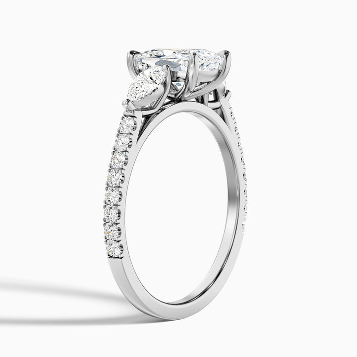 Ivana 2.5 Carat Three Stone Pave Ring with Pear Side Stones and an Elongated Cushion Moissanite Diamond in 14k White Gold