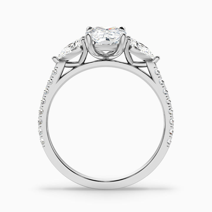 Ivana 2 Carat Three Stone Pave Ring with Pear Side Stones and an Elongated Cushion Moissanite Diamond in 10k White Gold