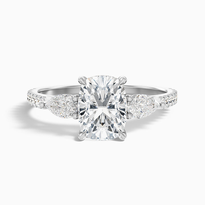 Ivana 5 Carat Three Stone Pave Ring with Pear Side Stones and an Elongated Cushion Moissanite Diamond in 14k White Gold