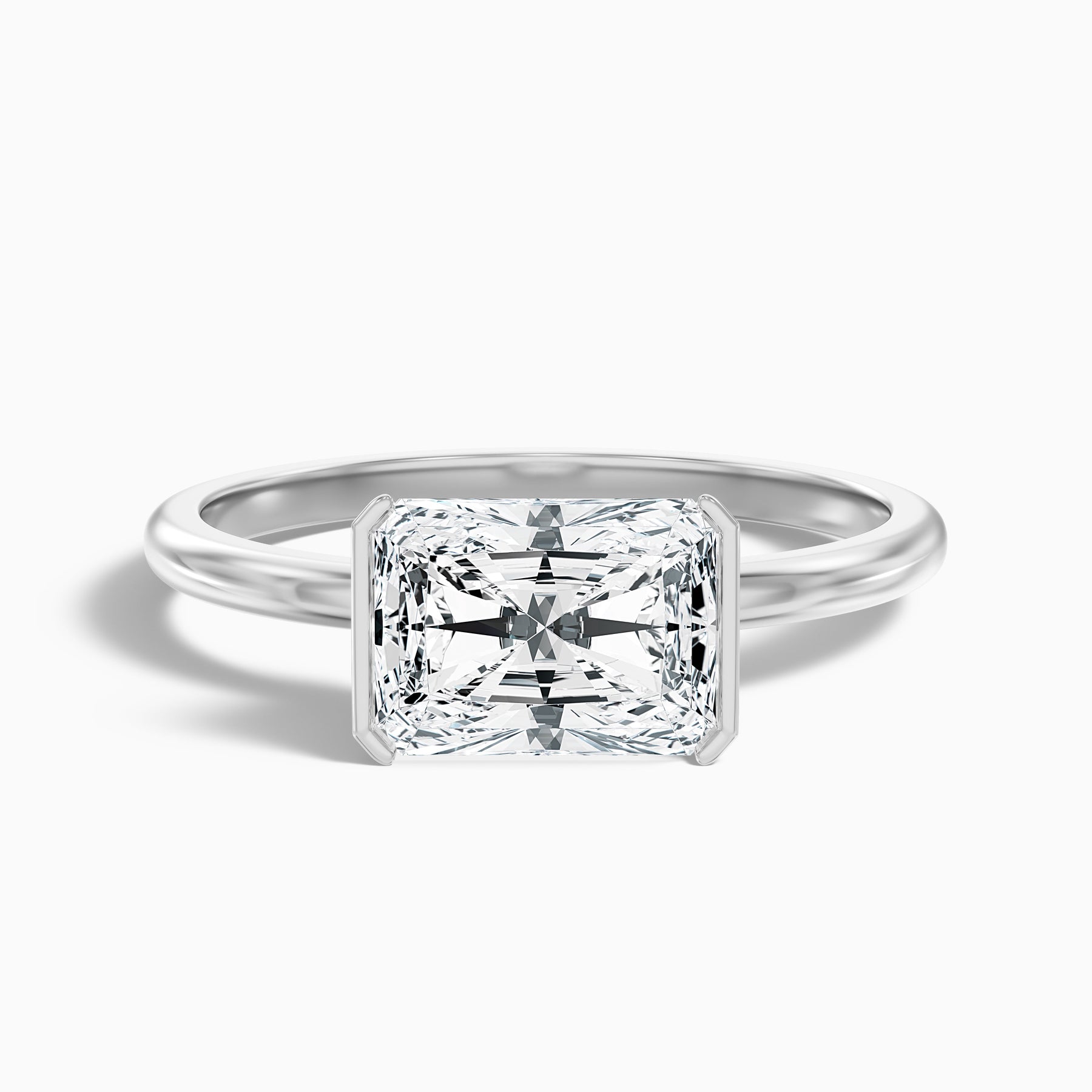 The jana radiant cut east west half bezel lab grown diamond ring is perfect for individuals who prefer a combination of durability and elegance. The bezel setting prevents the diamond from catching on fabrics, making it a practical choice for those with an active lifestyle. This ring is a wonderful choice for engagements, anniversaries, or as a personal statement piece.