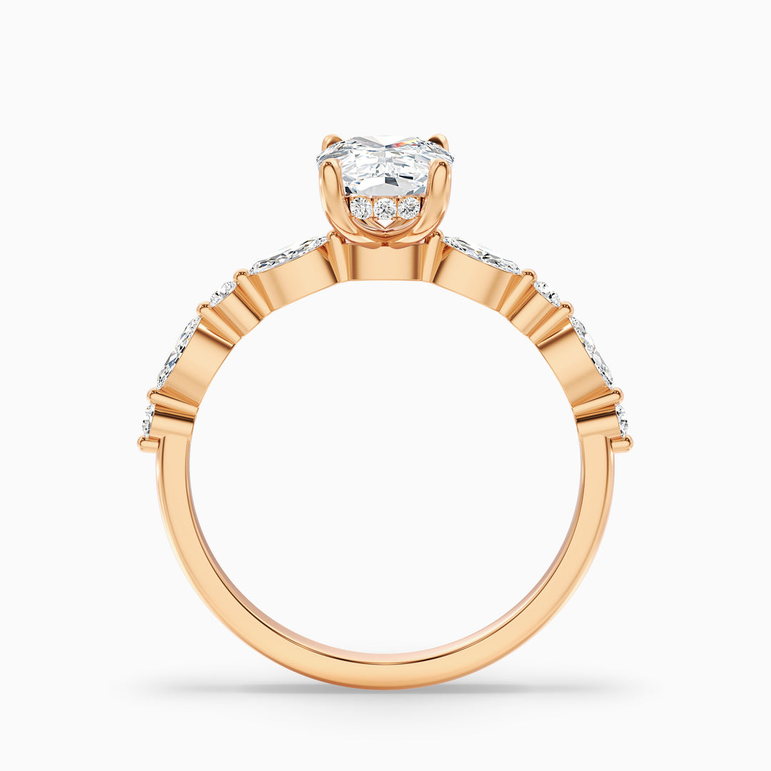 Celebrate your love with the joyee elongated cushion cut hidden halo with side stone moissanite diamond ring. It features a 3 carat moissanite diamond in a hidden halo setting.