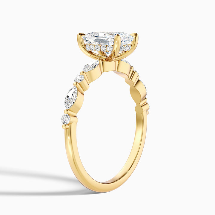 Celebrate your love with the joyee elongated cushion cut hidden halo with side stone moissanite diamond ring. It showcases a 4.5 carat moissanite diamond with a hidden halo.