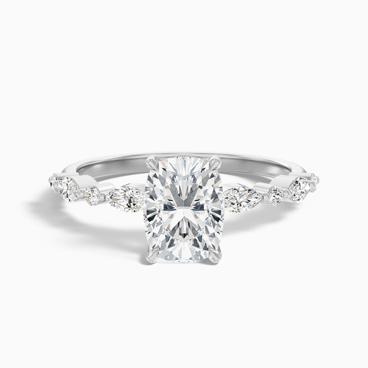 Celebrate your love with the joyee elongated cushion cut hidden halo with side stone moissanite diamond ring. It showcases a 5.5 carat moissanite diamond with a hidden halo.