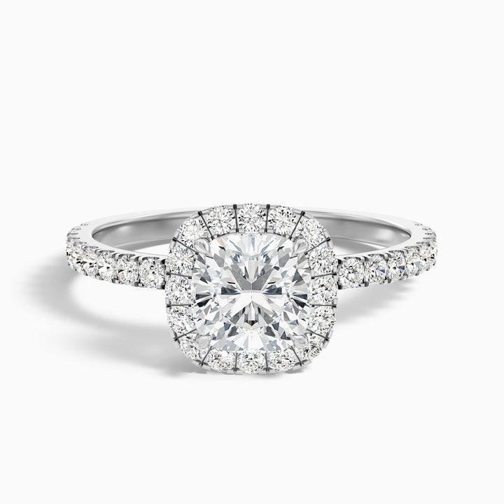 June 1 Carat Cushion Cut Halo Pave Lab Grown Diamond Ring in 18k White Gold